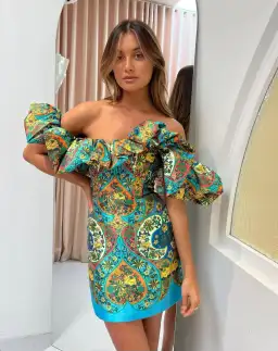 Alemais Sofie Off Shoulder Mini Dress Multi Floral Size AU 14