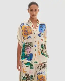 Inspire your inner artist with the illustrative and bold Soleil Oversized Shirt and pant in Ivory from Alemais.