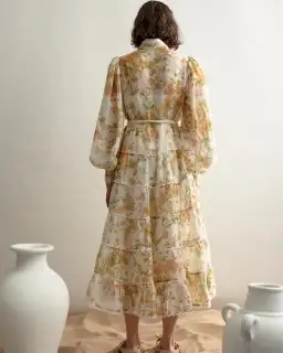 Finishing with a tiered flounce hemline, in a stunning vintage floral print, the Songbird Tiered Midi will send you twirling through golden hour moments into special dinner dates and luxurious winery getaways.