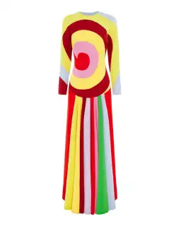 Follow the circular rainbow down the yellow brick road and into the world of Hilma af Klint and The Five. The experimental artistic and spiritual collective inspired the bold colour and paneling in The Five Gown.