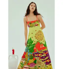 Alemais Tiger Day Midi Dress Multi Print Size AU 12