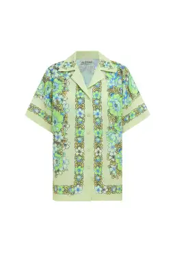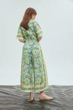 Alemais Velma Oversized Linen Shirt and Pants Set Green Floral Size AU 16