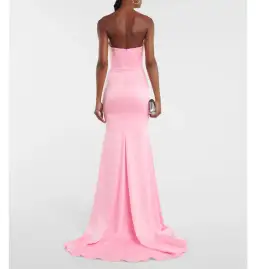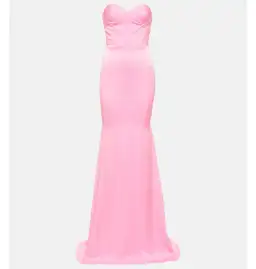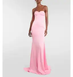 Opt for Alex Perry's Barkley gown for a sophisticated evening ensemble. Made from pink satin crêpe, the strapless style features a corseted bodice that extends into a floor-length mermaid skirt. The model is wearing size 8