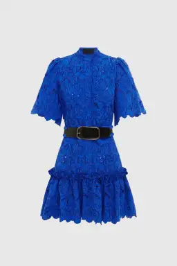 Leo Lin Alice Lace Short Sleeve Mini Dress Lapis Blue Size 10