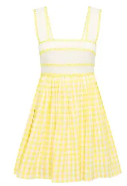 Alice McCall Mango Wild Angels Mini Dress. Size 12 AU RRP $295. Mini length. Gingham print. Sleeveless. Straight neckline. Patterned neckline. Thick spaghetti straps. Fit and flare design. Lined. 100% polyester.