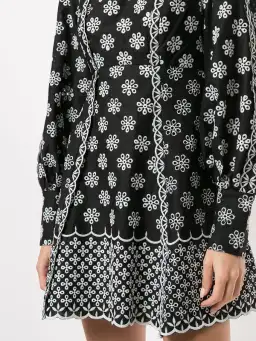 Black/white cotton Angels sleeve mini dress from Alice McCall featuring floral embroidered design, round neck, long sleeves, buttoned cuffs, concealed rear zip fastening and scalloped hem.