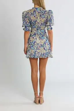 Stand out at the party with the stunning Sapphire Frida Mini Dress by Alice McCall. This feminine dress boasts a crew neckline adorned with ruffle trims, puff sleeves, and a tapered waist. Rent this dress for your upcoming holiday to exude summer vibes.