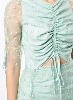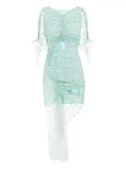Step into a dream with the Alice McCall 'Stardust' Midi Dress in Dusty Peppermint. This enchanting piece features delicate celestial embroidery on sheer mesh, creating a whimsical yet sophisticated look. The soft pastel hue adds a touch of romance, making it perfect for special occasions where you want to shine.