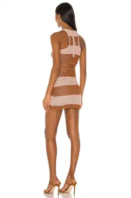 The Stone Roses Mini Dress gives us the ultimate Pretty Woman inspiration. Cut from a metallic crochet knit, this stripe mini dress features a cut out at your midriff with gold circular hardware. Pair with strappy heels and a structured cross body bag. - Lined - Zipper at back - Racer back