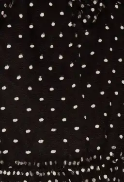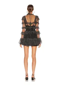 This rare Alice McCall Tokyo Sky Mini dress features a fun dot mesh fabric, raw cut ruffles, and is lined with a low V-neck detachable mini dress slip whilst the sheer fabric covers your décolletage and finishes high on the neck.