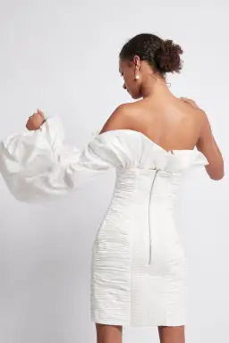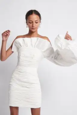 Aje Allegro Tucked Puff Dress White Size AU 10