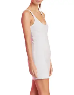 Sleeveless bonded crepe mini dress with bust panel line feature.