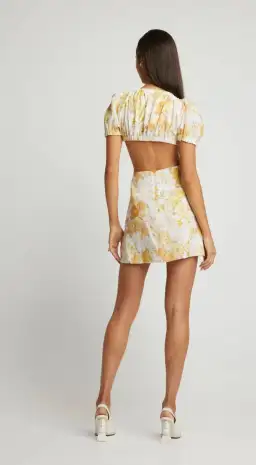 Sofia The Label Ami Tie Front Mini Dress Yellow Floral Size 8