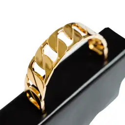 The minimal boxy design makes for a chic statement. The Pernille bag is crafted from smooth black calfskin leather; with a gold-tone chain-like handle.