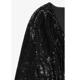 Dress Elena by Anine Bing. A festive mini dress with long sleeves. Deep v-neck at the front that can be adjusted with a hook. The dress is adorned with sequines and has a smaller elastic band at the waist section. Two slanted front pockets. Closes with a hidden zipper in the side seam. The dress has an inner lining.
