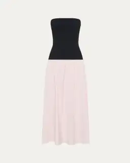 Anna Quan's dress is a treat for minimalists. The ribbed jersey bodice contrasts with the crisp poplin skirt, both offering a hint of stretch and breathability. Its pared-back design serves as the perfect canvas—just add statement jewellery to elevate it for special occasions.