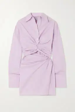 ANNA QUAN's 'Lola' shirt dress has a cutout at the waist that creates the illusion of two separate pieces. Made from stretch-cotton in a soft lavender hue, it has a twisted front and is gathered at one side of the wrap-effect skirt. Wear yours with mules.