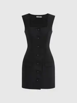 Reimagined for a timeless style experience, this classic shape leans into a tailored mood. The LIA Dress is fitted with a formal button closure, side pockets, flattering square neckline and mini length. Wear alone or layer underneath with crisp tailored shirt or fine knitwear.