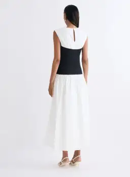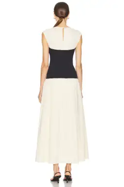 - Woven cotton poplin and ribbed jersey - Fitted contrast bodice - Round neckline- Drop waistline- Keyhole back closure- Midi length- Regular fit