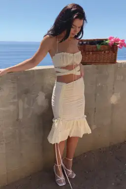 Semi sheer set, perfect for summer and day occasions. Can be worn as a set or mini dress (with skirt pulled up to bust). Labelled size XS/S. Delicate.
