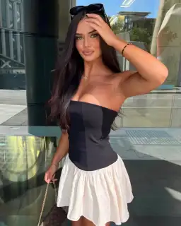 Cotton drill contrasted with polyester scuba crepe. Designed & made in Australia. Self-lined bustier. Bustier offers minimal stretch. Asymmetrical waistline. Zip closure. If you are quite tall we recommend sizing up it’s a mini fit quite short.