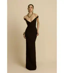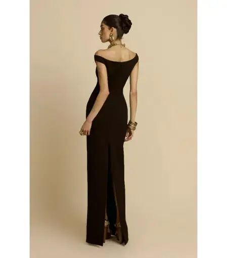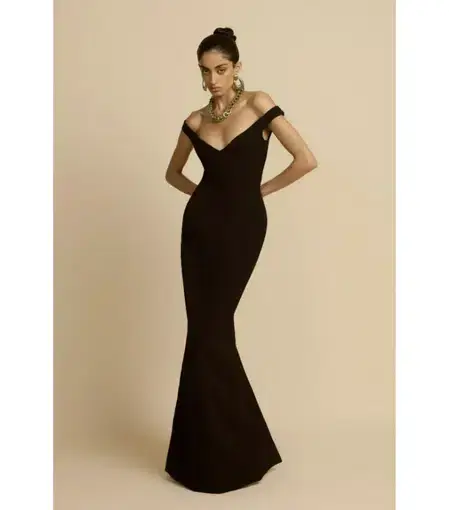 Striking in simplicity, Ellery is a black maxi designed to contour and flatter. Crafted from a sculpting crepe, she features an effortless off-shoulder neckline that flatters the décolletage, before descending into a floor-length dress. Elegant yet timeless, Ellery is made for lasting moments.