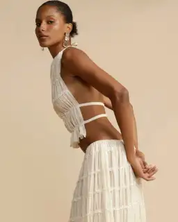 Designed & made in Australia. Poly Georgette. Warm Cream hue. Adjustable. Halter-style top. Make it a set with the Juliette skirt.