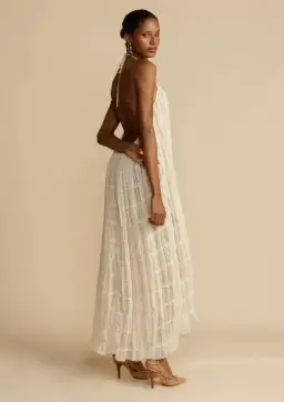 Featuring a voluminous maxi skirt with ruched detail and delicately piped lace. Juliette is a fashion-forward essential, her drawstring waist allows you to wear her as a skirt, or make a flattering flowing dress with a sweeping low back.