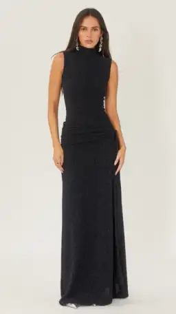 Introducing Monica, timeless elegance with a touch of individuality. She showcases a sleek, sleeveless silhouette complemented by a classic mock neckline. Crafted from a lustrous metallic nylon, Monica mesmerises in a captivating midnight blue hue. Featuring a lined bodice, to flatter and accentuate the feminine curves. Complete with cascading ruched detailing that cinches your waist and gracefully trails down the dress. Monica was made to last for years to come; leaving a lasting impression, she’s the ideal selection for your next black tie event.