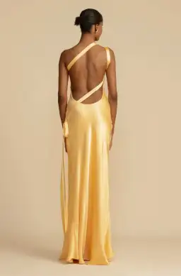 Elevate your presence with Monique, a mesmerising floor-length gown designed for modern elegance. Crafted in a luxurious rich yellow hue cut on the bias, Monique is made to accentuate your curves and ignite the senses. She features an asymmetrical one-shoulder design with a striking open back. Finely finished with crossover detailing and sculpted to embrace the feminine form. Her strap flows gracefully over the back, securing at the side hip. Crafted from a high quality Viscose offering comfortability and sophistication. Monique’s elegant design will take you from sunset to a moonlit soiree.