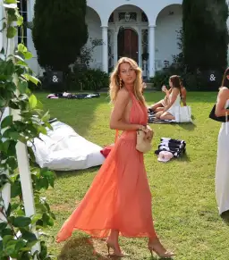 Fasten her sensual halter neckline securely around your neck, and let the ties gracefully trail down the open back. Lined to complete, Serena is the perfect selection for your sunlit seasonal sips.