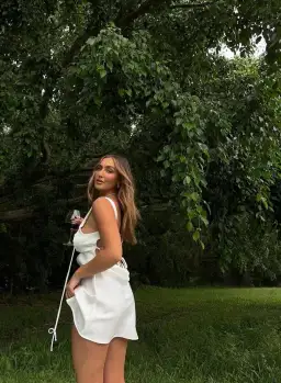 - The Valentina mini is sexy meets sweet. She's cut on the bias for that signature low cowl back and effortless flow. Designed with a double lined bodice, ruched ties and laced up back. Made from a lustrous silky satin that falls to the curve of your hips. Pair with your favourite high heels and some lippy for your next date night.