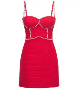 Area NYC Red Embellished Tweed Bustier Dress Red Size AU 6