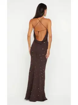 Bec & Bridge Arielle Slip Maxi Dress in Dark Chocolate Brown Size 8