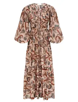 Zimmermann Ascension Tie Billow Maxi Dress Blue Indienne Floral Size 3/Au 14