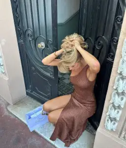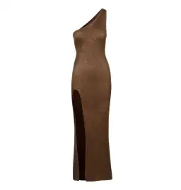 The Sofia Split Dress in Chocolate Sequin by Asta Resort. An opulent ankle length dress designed to be the centre of attention and flaunting your figure. Made from a lustrous cotton-based knit woven in with micro sequins from head to toe. 60% Cotton 40% Polyester. Light stretch, slip over design.