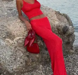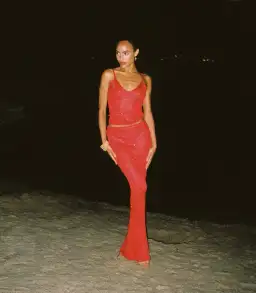 A scintillating floor length skirt made from a luxurious cotton-based knit with micro sequins woven throughout. Semi-sheer.