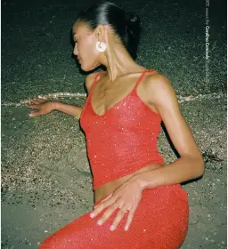 A scintillating thin-strap camisole with a V neckline, knitted from a our signature cotton-based yarn with micro-sequins throughout.
