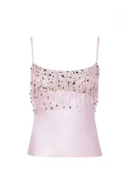 A myriad of sparking sequins and cascading beads take flight off a base of Silk Linen. The bralette top features an invisible centre back zip and adjustable shoulder straps.