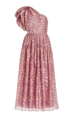 Ulla Johnson's Athena Dress is made out of an airy organza, printed with a hand-painted motif atop a lavender background.