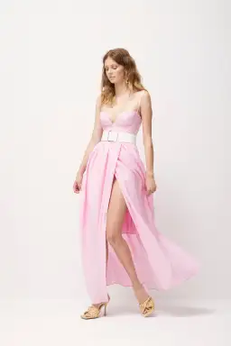The Bay Dress is a playful maxi dress crafted from natural Banana Fibres. Featuring a sweetheart neckline padded cups and spaghetti straps
