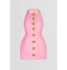 The Tiffany Dress is a statement cocktail style dress, featuring a mini length hem, t-back detail and hand-stitched floral metal hardware. Fully Lined.