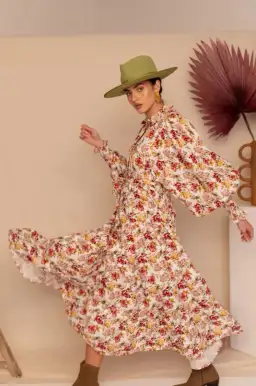A similar shape to our Frida Maxi with even more incredible quality detailing such as the ruffled neckline and skirt.
