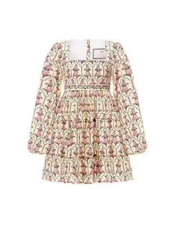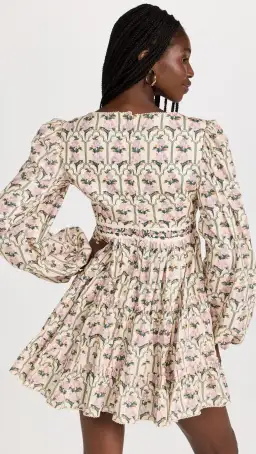 Season after season, Agua by Agua Bendita's 'Avena Peonia Aurora' mini dress continues to be a bestselling style. With a striking square neckline, puffed long sleeves, and now a stunning hand-embroidered waistline, this beloved dress takes 11 hours to hand embroider.