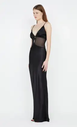 Turn heads in the BEC + BRIDGE Ayala Maxi Dress – an elegant bias-cut silhouette featuring a flattering V-neckline, sheer mesh waist with keyhole detail, and a relaxed flowing skirt. With adjustable straps and soft stretch through the waist, it offers a comfortable yet elevated fit. Perfect for formal events, weddings, and evening occasions.