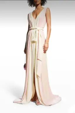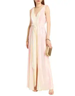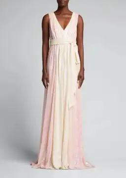 Badgley Mischka Two Tone V-Neck Sequin Long Gown Pink and Lemon Size AU 8