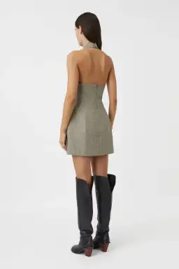 The Banks Mini Dress is crafted from the perfect tailoring blend and transcends conventional design with its remarkable form and detail. The halter neckline exudes a timeless allure, while the sculpted silhouette creates an hourglass silhouette that embodies grace and elegance. Elevating this versatile mini dress is the centre front hook and eye detail and curved paneling that commands attention.