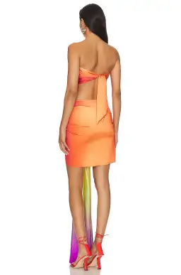 This high-end strapless mini dress with a side knot, made with a silk-like fabric in a multicolor tone, envelops you in poetic grace to create a unique look. Elevate your beach-to-bar looks with this eclectic mini dress that features an inner bra and semi-open back to highlight your curves.
