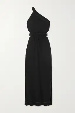 Bassike's one-shoulder cutout midi dress is elegant in its simplicity and contemporary in design. Can be dressed up or down easily with accessories. It's been made locally to the brand in Australia from organic cotton-jersey that's soft and breathable. Complement the gold stitching with coordinating hoops.