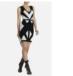 BCBGMaxaxria “Evinna” dress Bcbg Maxazria black and white geometric jacquard dress. Same material as Herve Ledger bandage dresses.